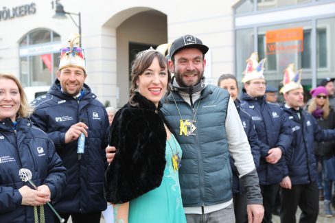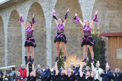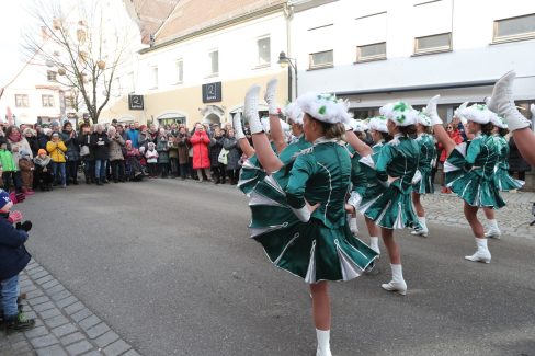 Los ging es im Rathaus beim Mitarbeiterfasching. Wir durften im Eingangsbereich im schönen Gewölbe unser Programm zeigen. Anschließend ging es zum @cafe.hofberg zum Seniorenfasching. Hier durften wir traditionell unseren Marsch und Walzer zum Besten geben. Als Schlusspunkt waren wir zu Gast auf der Bühne auf dem Hauptplatz direkt vorm Rathaus. Bei strahlendem Sonnenschein waren viele Zuschauer gekommen und die Garden auf der Bühne anzufeuern.